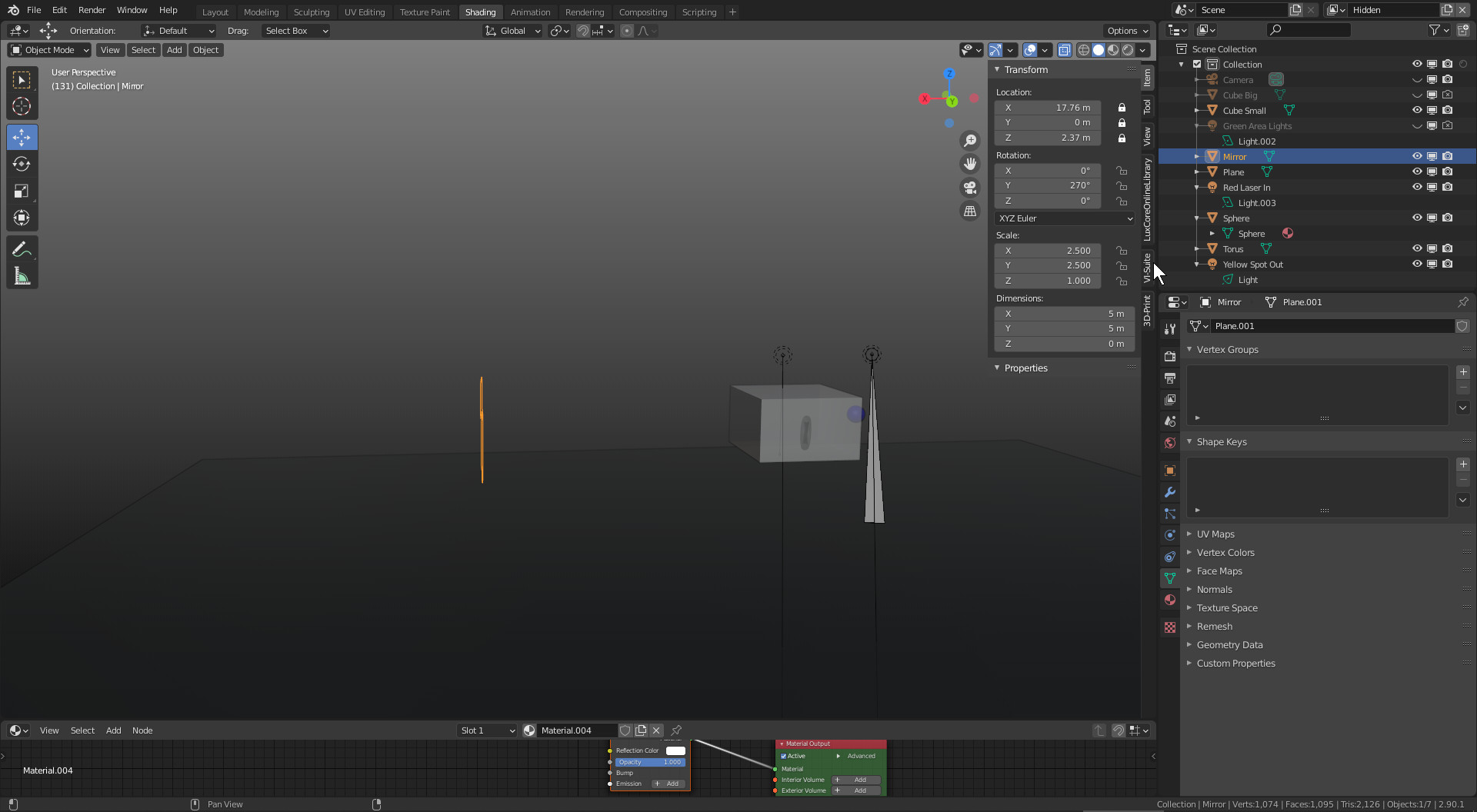 Also removed the Glass Cube Object Front Face so the Laser will be visible now and then try to reflect it from a Mirror Object.