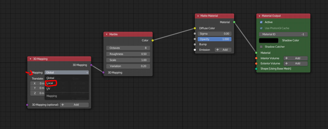 You have to add a 3D mapping node. There you can switch from global to local mapping.Sharlybg wrote: Tue Jun 02, 2020 9:51 am I don't see any option in blendluxcore to do that to change to local object space mapping.