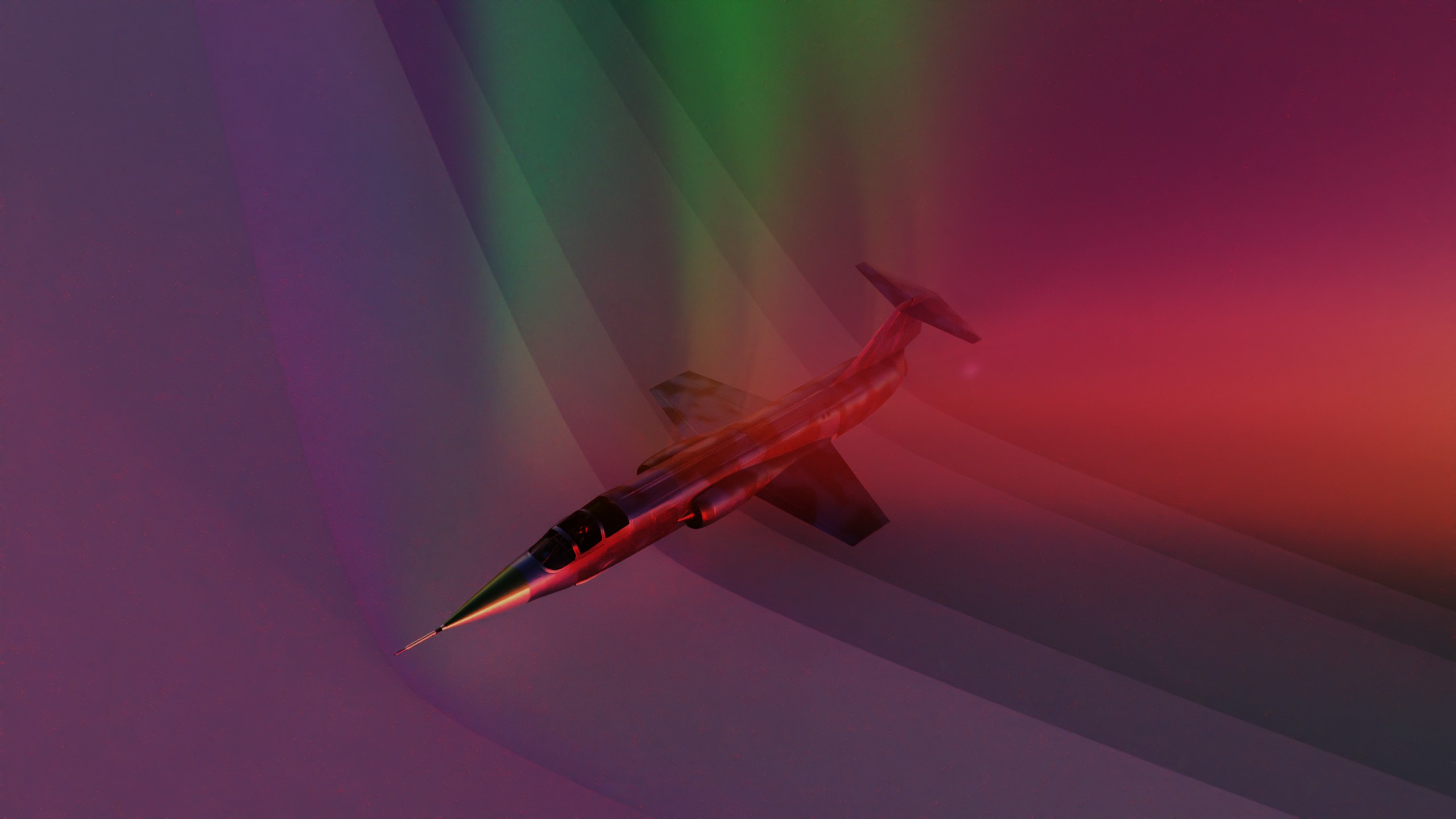 An experiment with the F-104 immersed in the clouds, and with a different lighting setup. Please don't mind the trail glitches, the mesh defining volumetric volume shape has some kown problems (crossing polygons, it is another experiment with more transparent layers of concentric trails).