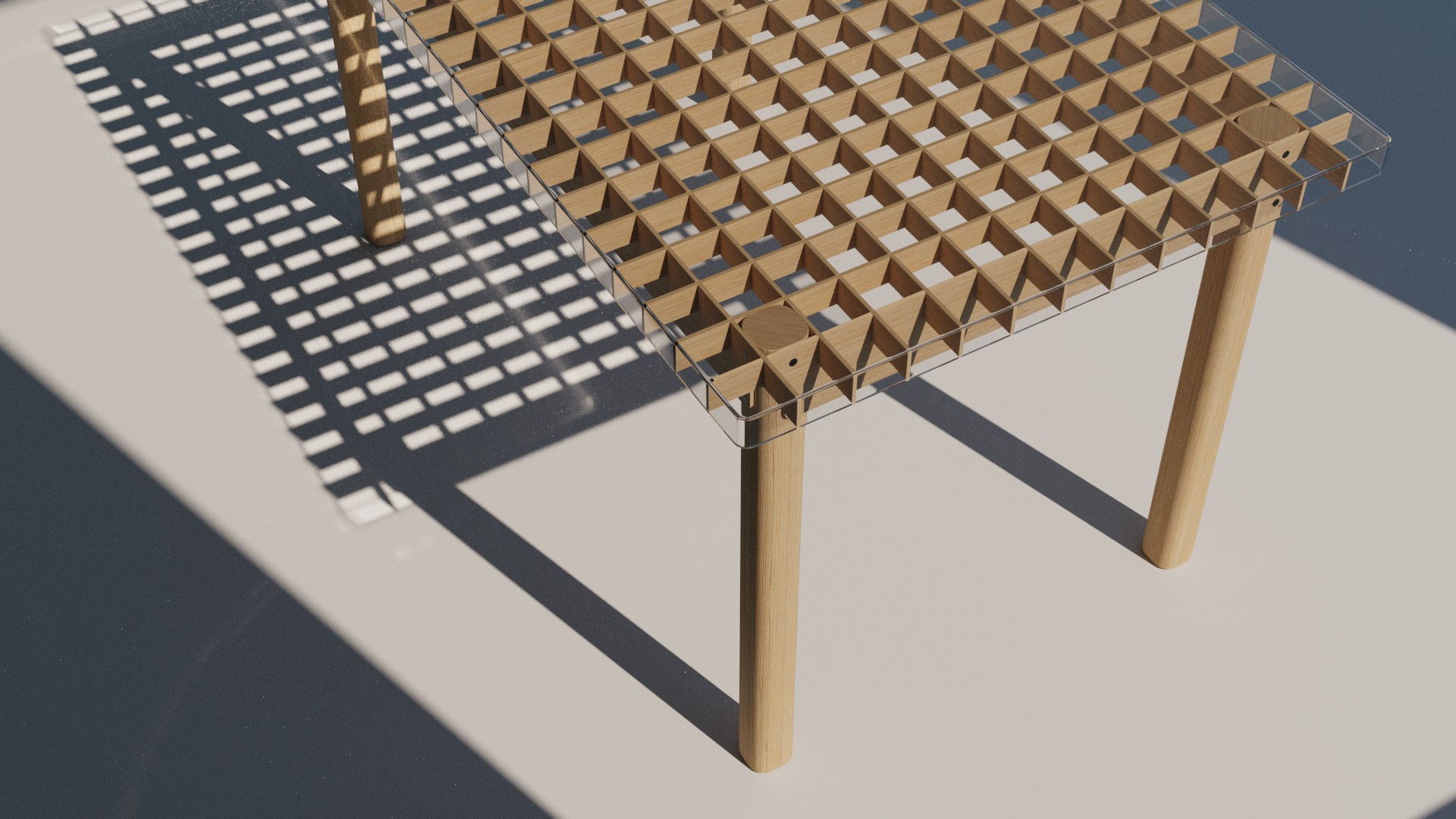 In my case it is important to show the grid of the table casting on the floor...so somehow needs to be a light that cast the shape correctly but still in a more refine matter than my render so far.