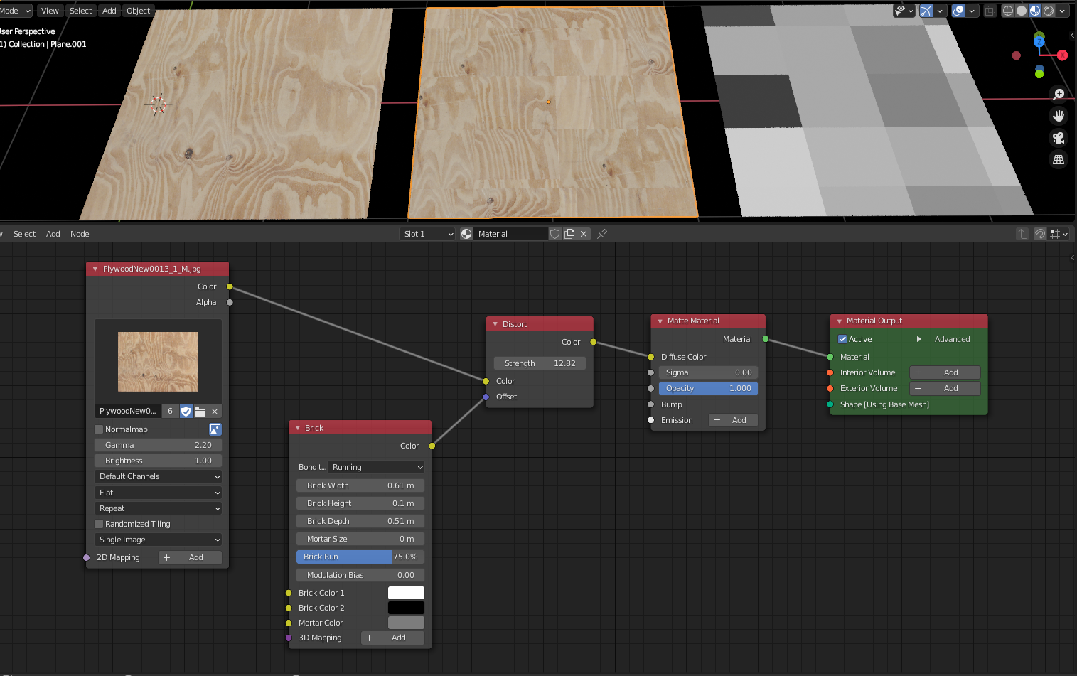 Working on Archviz in Cycles, there's a super useful way to do semi procedural material for decking and similar stuff. It uses the brick texture to offset UV's of diffuse, roughness and bump maps, drive the color and roughness variations by color multiplying those maps, and of course, bump.