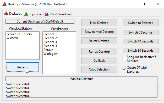 However for using Blender the Sysinternals tool is sufficient. Here is a tip for convenience: Put a Blender Icon on your desktop before you switch to the "Private Desktop". Then you can start Blender from that Icon.