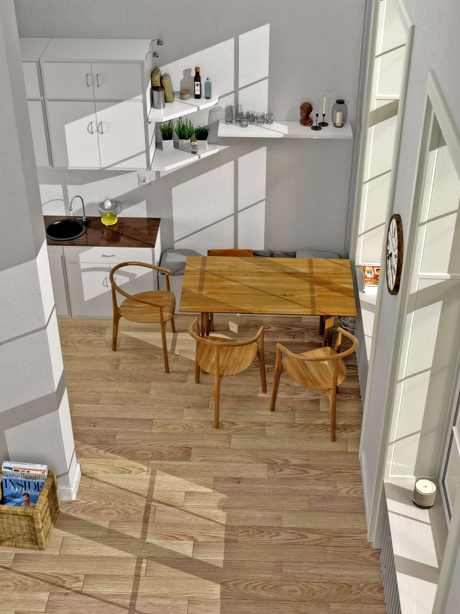 Below, a white kitchen project - practicing high-key lighting in Lux Core. I'm not so sure about white balance