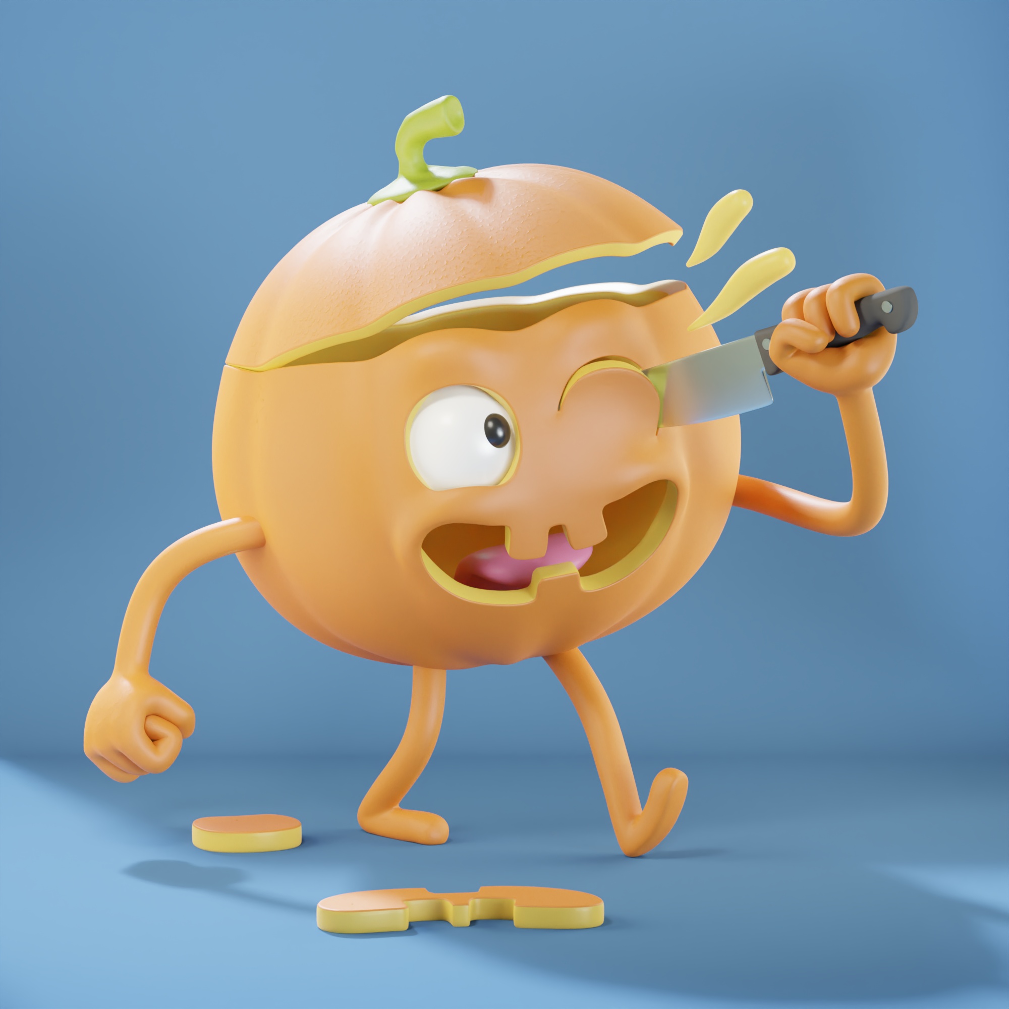 I managed to get a bit more visible SSS light falloff inside the pumpkin, but still not the glowy liquid SSS of Cycles.