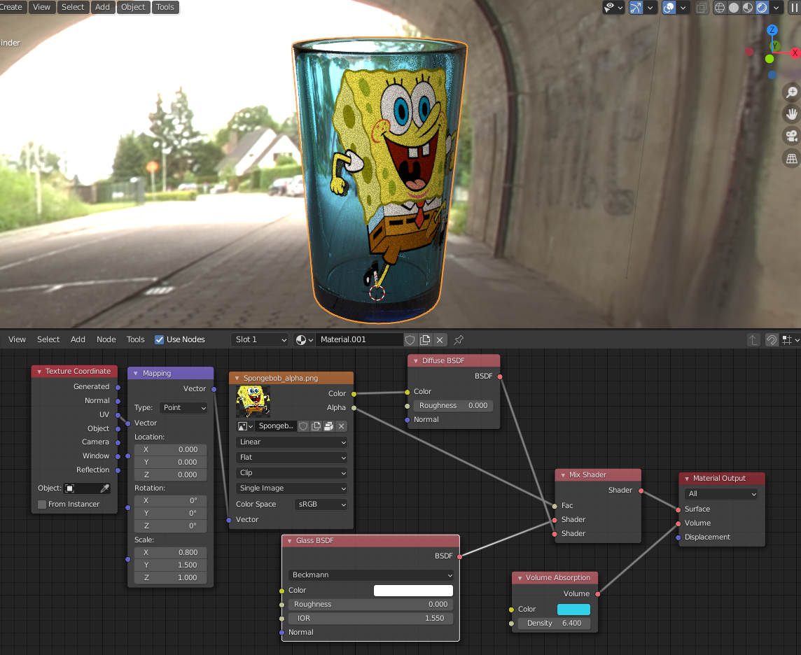 connect SpongeBob Color -> ColorRamp, setting black Offset to 0.9 in ColorRamp