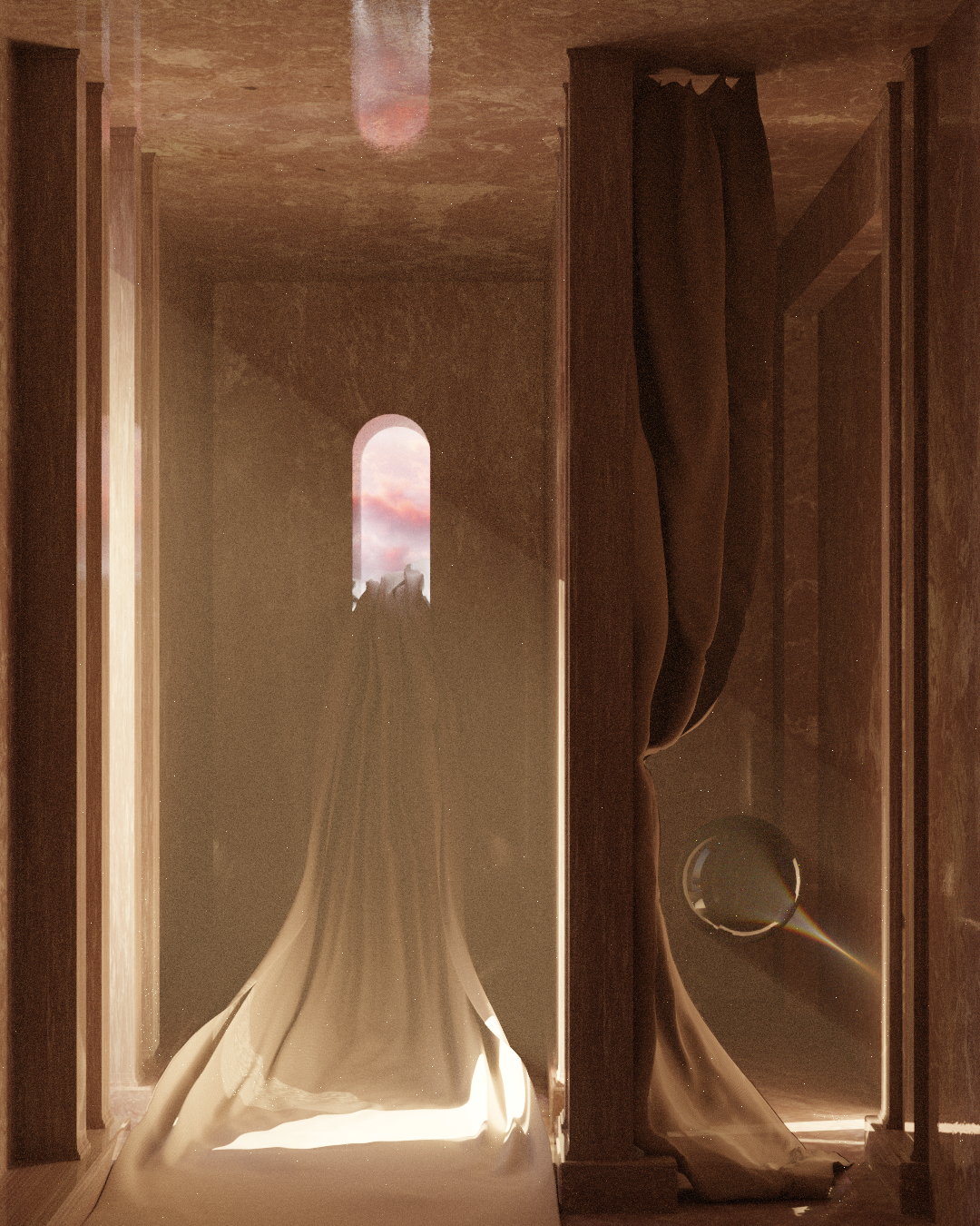 The earlier scene without the blue ceiling shows the light setup as it's supposed to be. The second with the strong diagonal across the front columns is wrong.