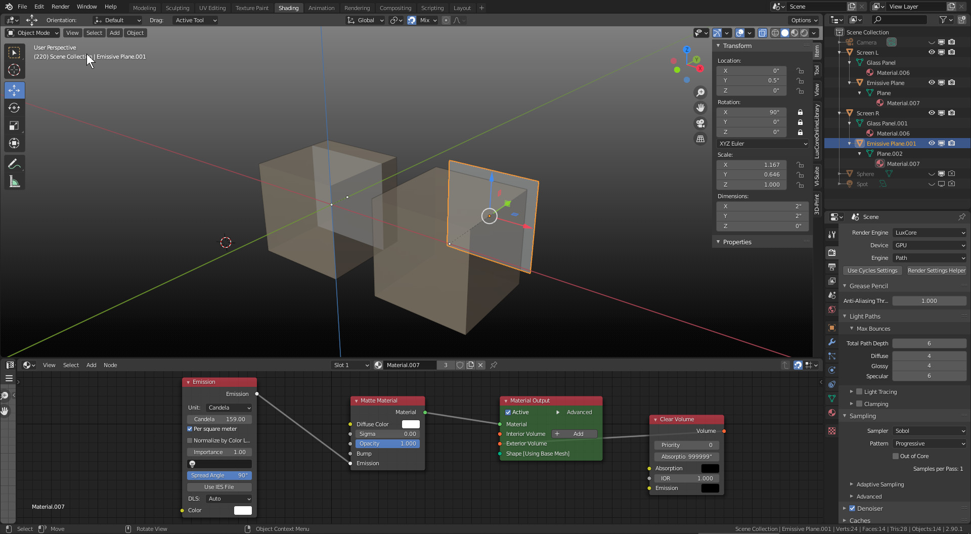 outer volume also of the luminance emission plane defined. IOR set also to 1