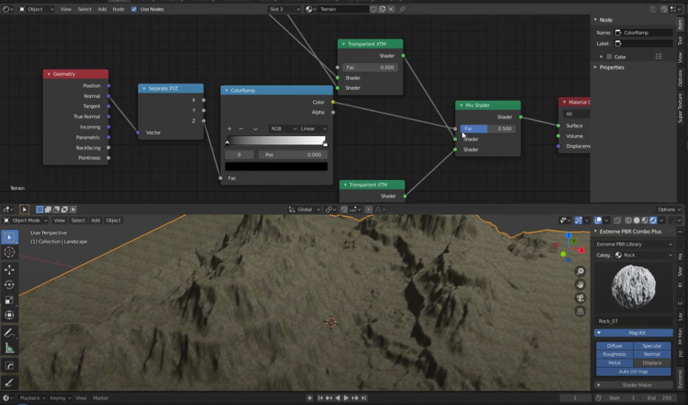 Is there are way to separate out normals based on geometry? This would allow applying a material based on the z slope of the normals, for example.