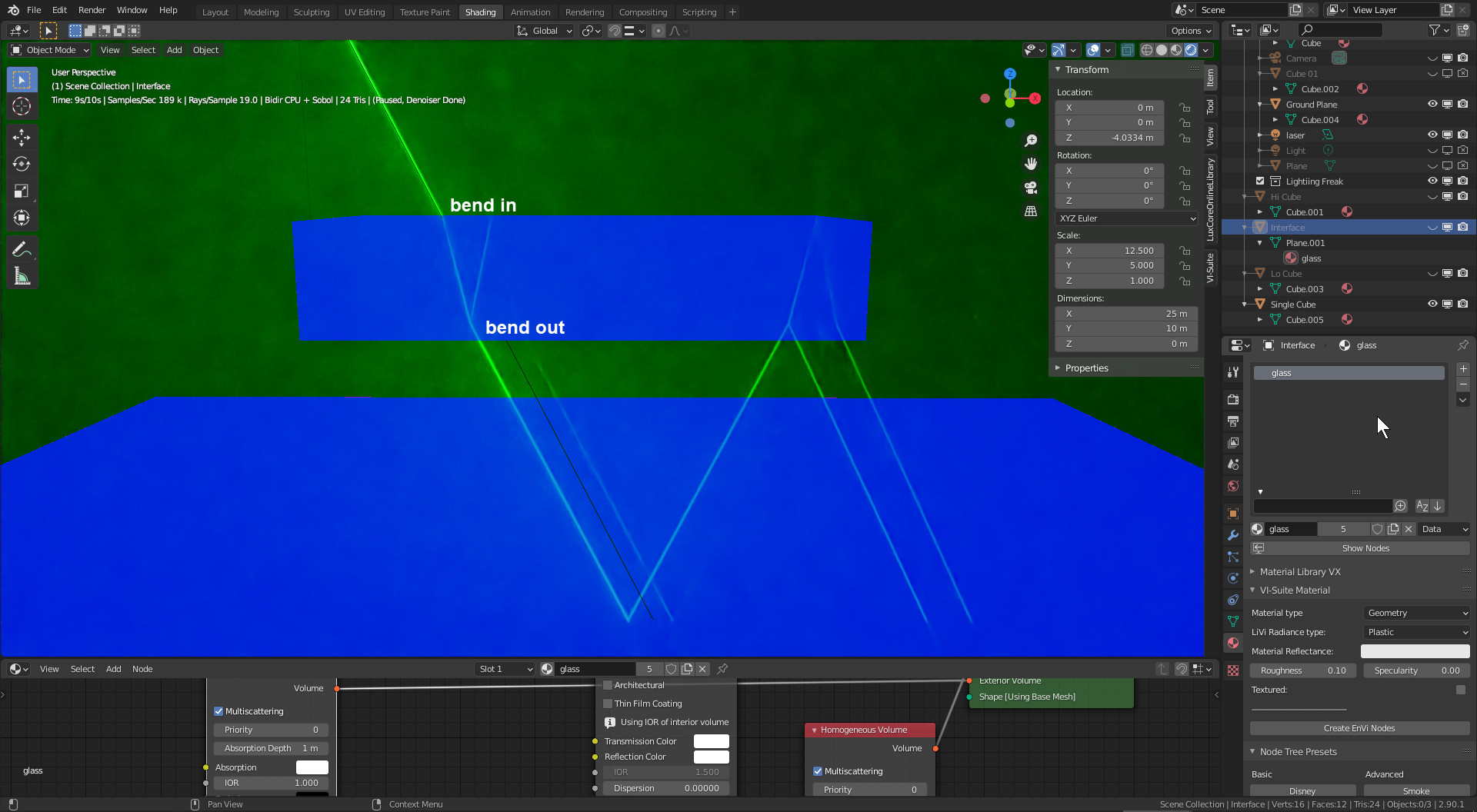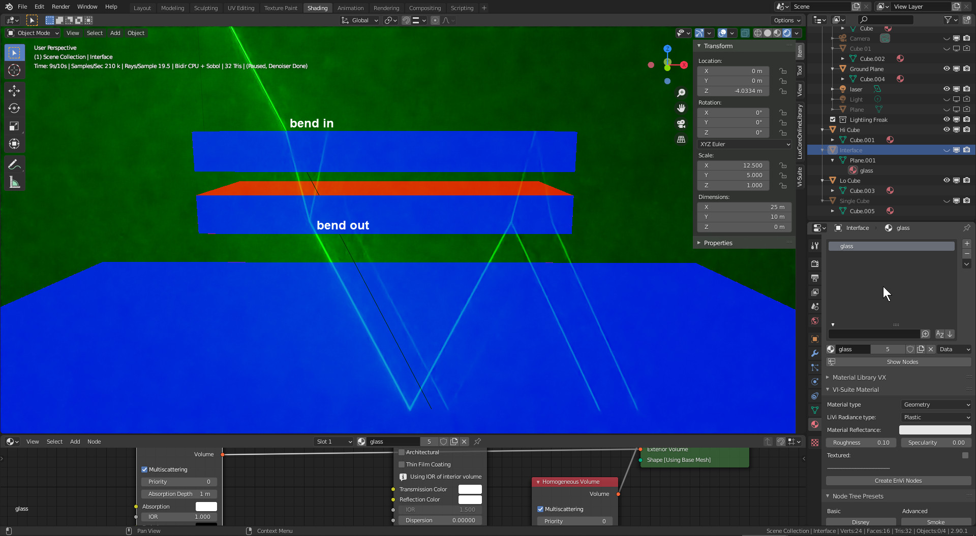 I think there is anomaly with the laser light itself. It's choosy on the face orientation. Let me put it in another post.lighting_freak wrote: Mon Apr 26, 2021 8:31 pmI think if you start flipping the face normals (see the arrows in the image) the algorythm will be confused with what is inside an outside of the volume.Jan wrote: Sat Apr 24, 2021 2:06 pm Refraction and Reflection on the 2nd Glass Object below the First Glass Object no longer works if Faces are flipped
