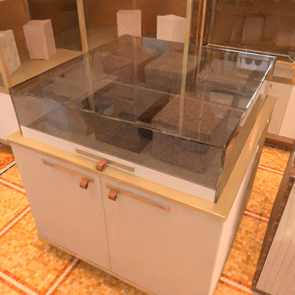 This is what i get wen i render the display inside his oroginal space. All materials are simple diffuse white (0.7) exept some light emitting surfaces and the glass itself. As you see the glass keeps being extremely dark.