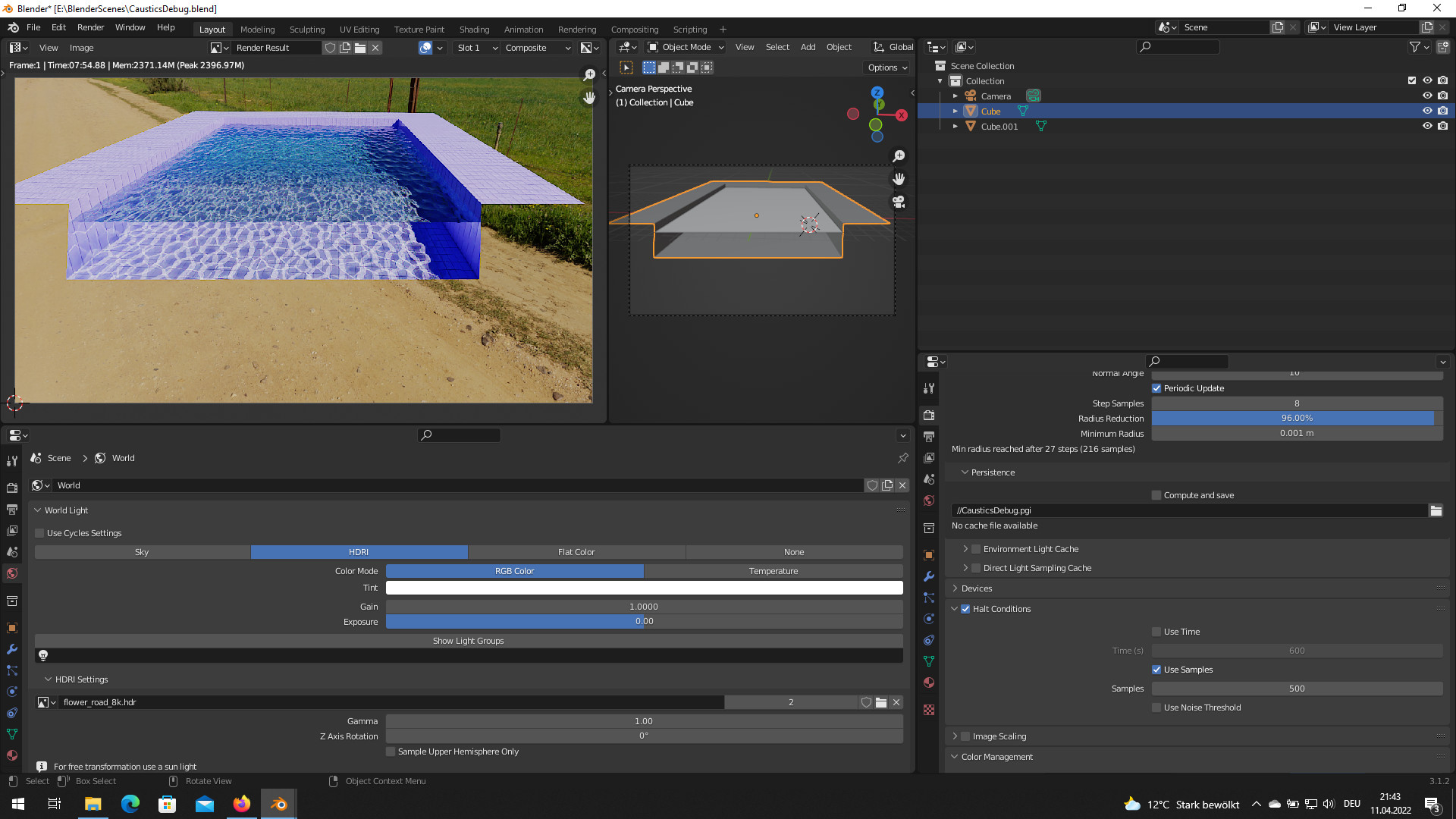 Add an HDRi to your liking and pool material: