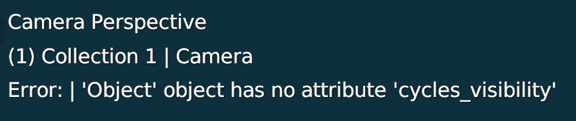 When I try to render a scene I get the msg that item “has no attribute visibility” and the viewport render shows grey shadow no material.