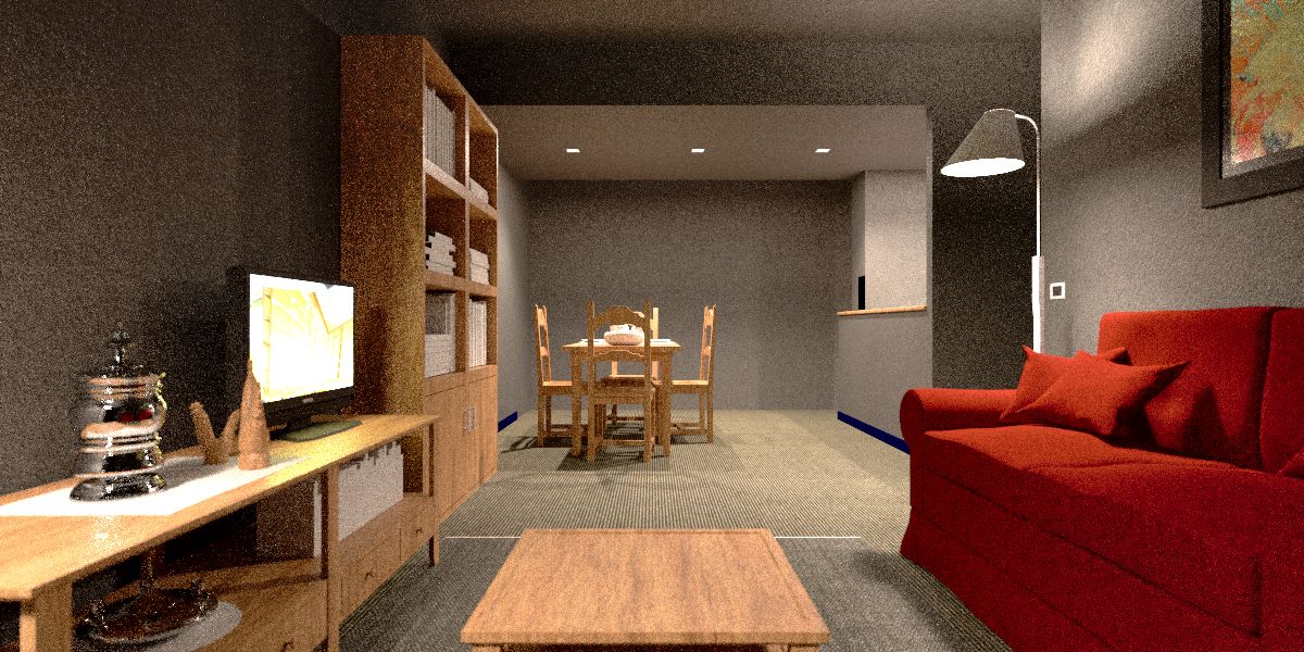 The last picture shows an other bidir rendering engine (10 years old) on which we tried a different approach obtaining decent results. We are running the same rendering twice at half the sampling level but using a different noise seed. Then we pass the two results through a time-based video noise reduction tool (neat-video). The result is an in-between of the noise of each pixel. In our implementation the only noticeable defect is that light distribution is slightly less "evolved" because the lower sampling level. But, at higher sampling levels, it converges correctly to optimal result with no artifacts. By sure it's a silly approach but it helped us to increase rendering speed by roughly 5 times with almost no noticeable artifacts.