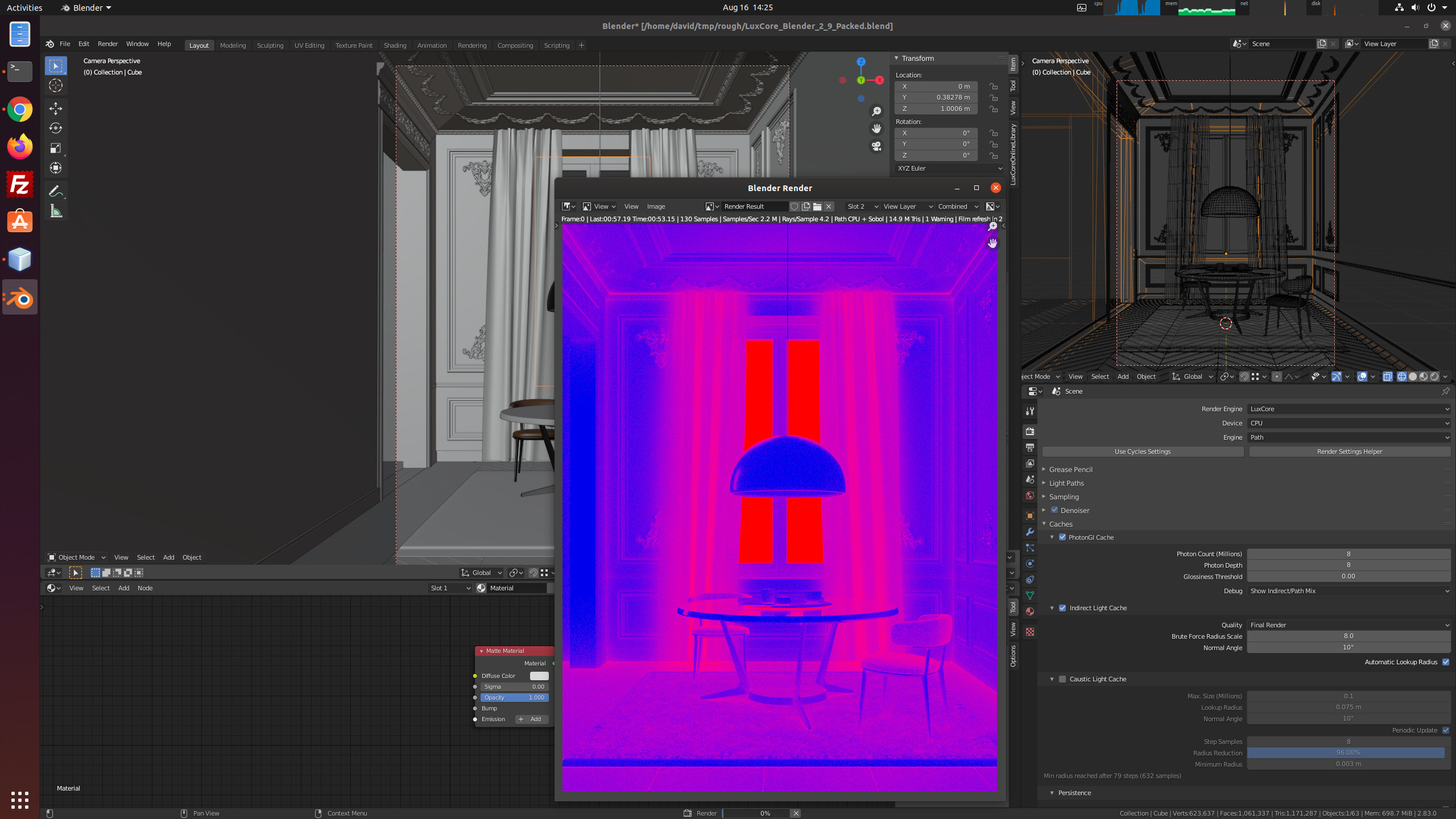 To avoid possible problems with the 2.9, I've opened the scene with 2.83.4 and, as the previous tests, I'm using latest BlendLuxCore 2.5 alpha.