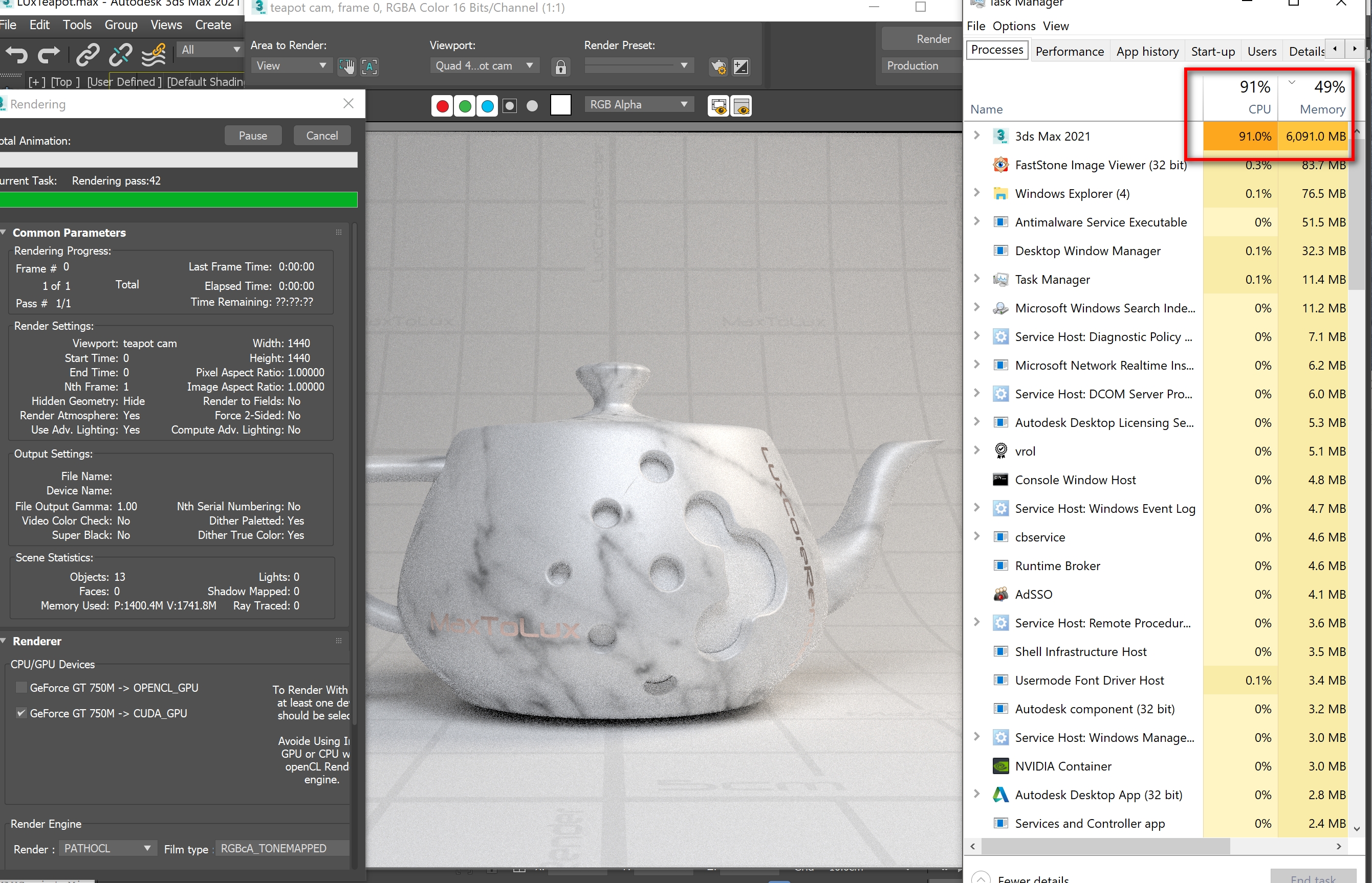 Suspend undo, macro recorder, animation, auto backup that will cause speed up the render base on 3dsmax settings by using less CPU/GPU.