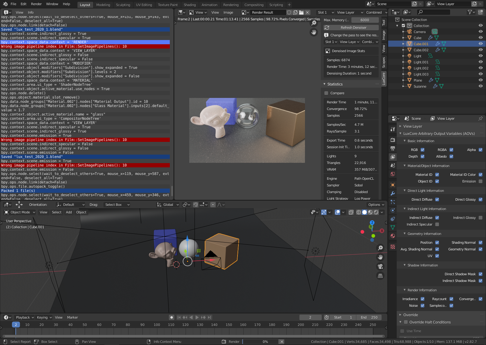 When I try to switch on any of these LuxCore AOVs: