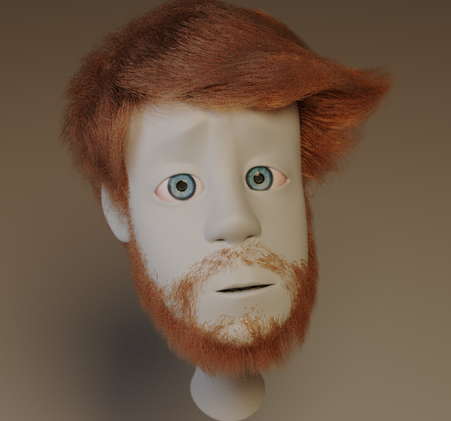 Here is a shader: Сolor should be very light and not saturated, otherwise you will get a very saturated hair color, which does look completely unrealistic: You also need to use anisotropic roughness, this creates natural specular on the hair.