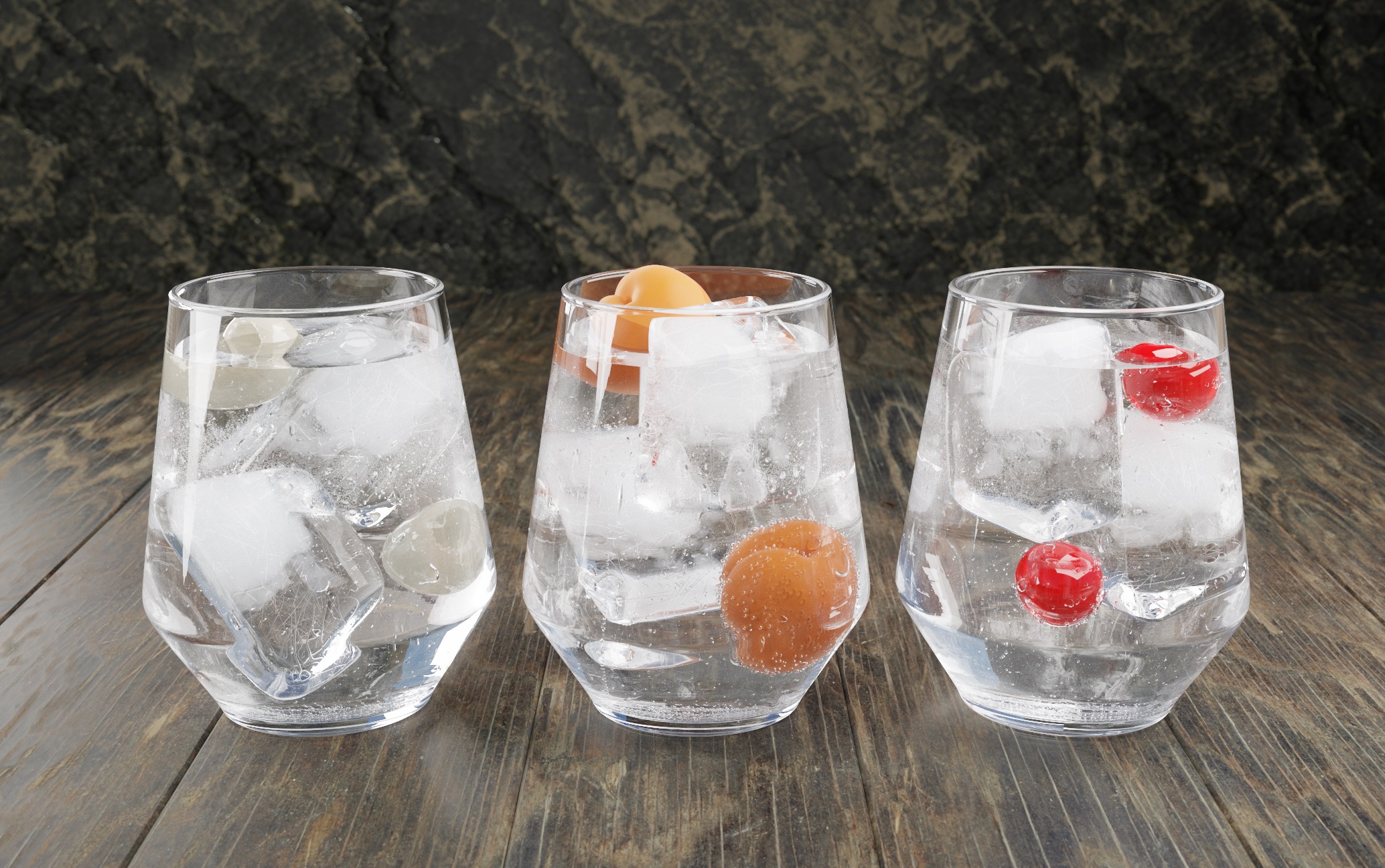 drinks come out very nicely - especially ice imperfections, glass roughness, bubbles scattering