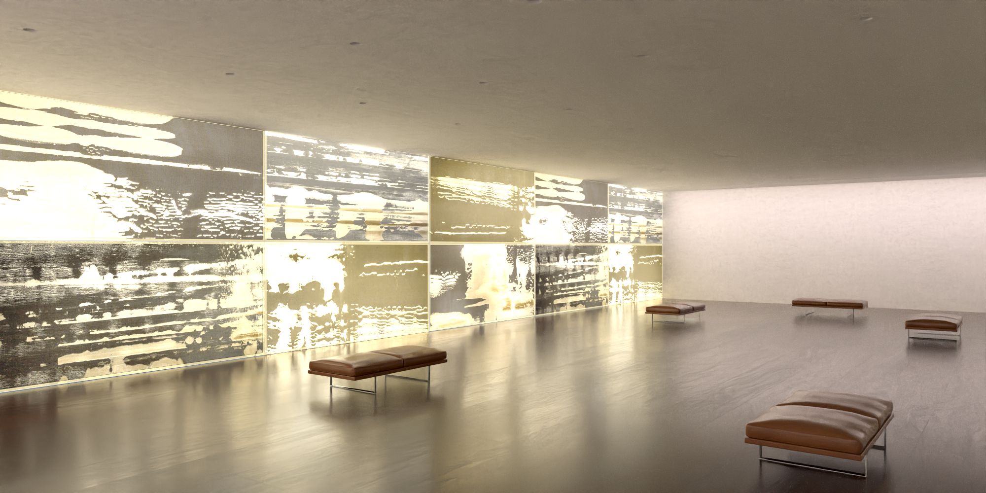 Wallwasher 80%caustics, 20% direct light + cetral spots led spots 70%caustics,30% direct light.