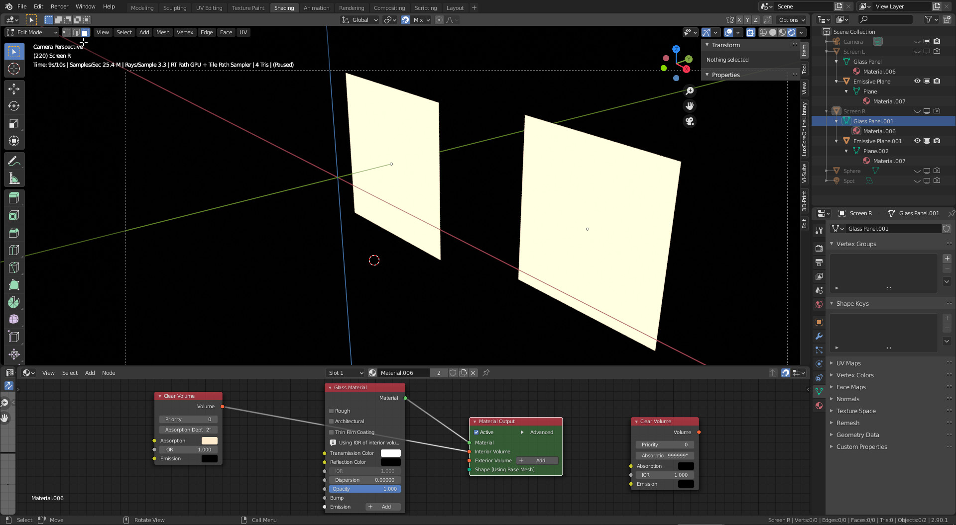 inner volume and outer volume of the glass cube both defined. IORs set to 1