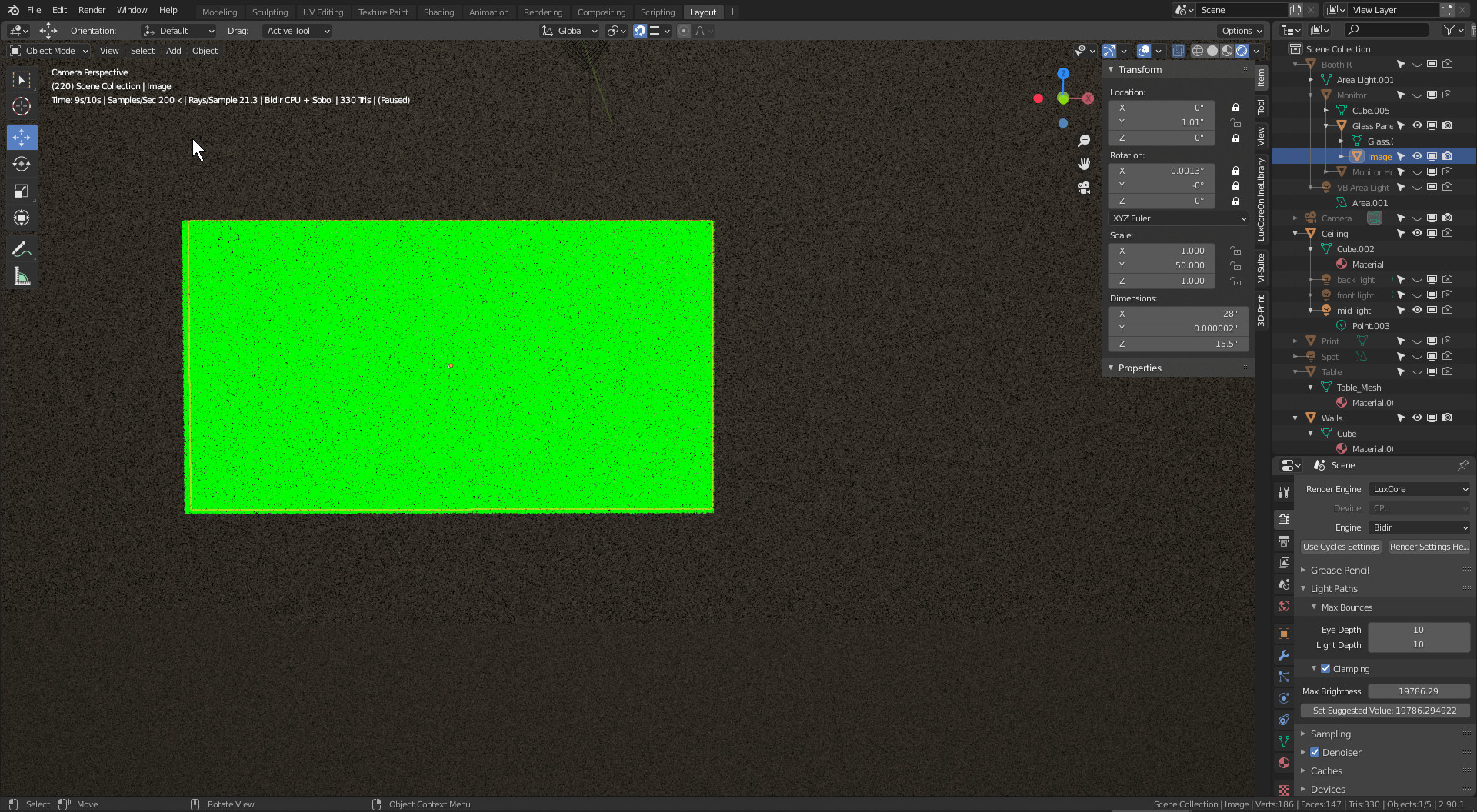 It is just 32bit floating point (lack of) precision as I have already explained lighting_freak multiple times in the past. You can not have overlapping surfaces, you have to use a single surface and appropriate interior/exterior volumes.Jan wrote: Mon Apr 19, 2021 4:30 pm As I said in my previous post strange artifacts happens if two surfaces overlap. A tiny gap of 0.1mm resolve the issue.