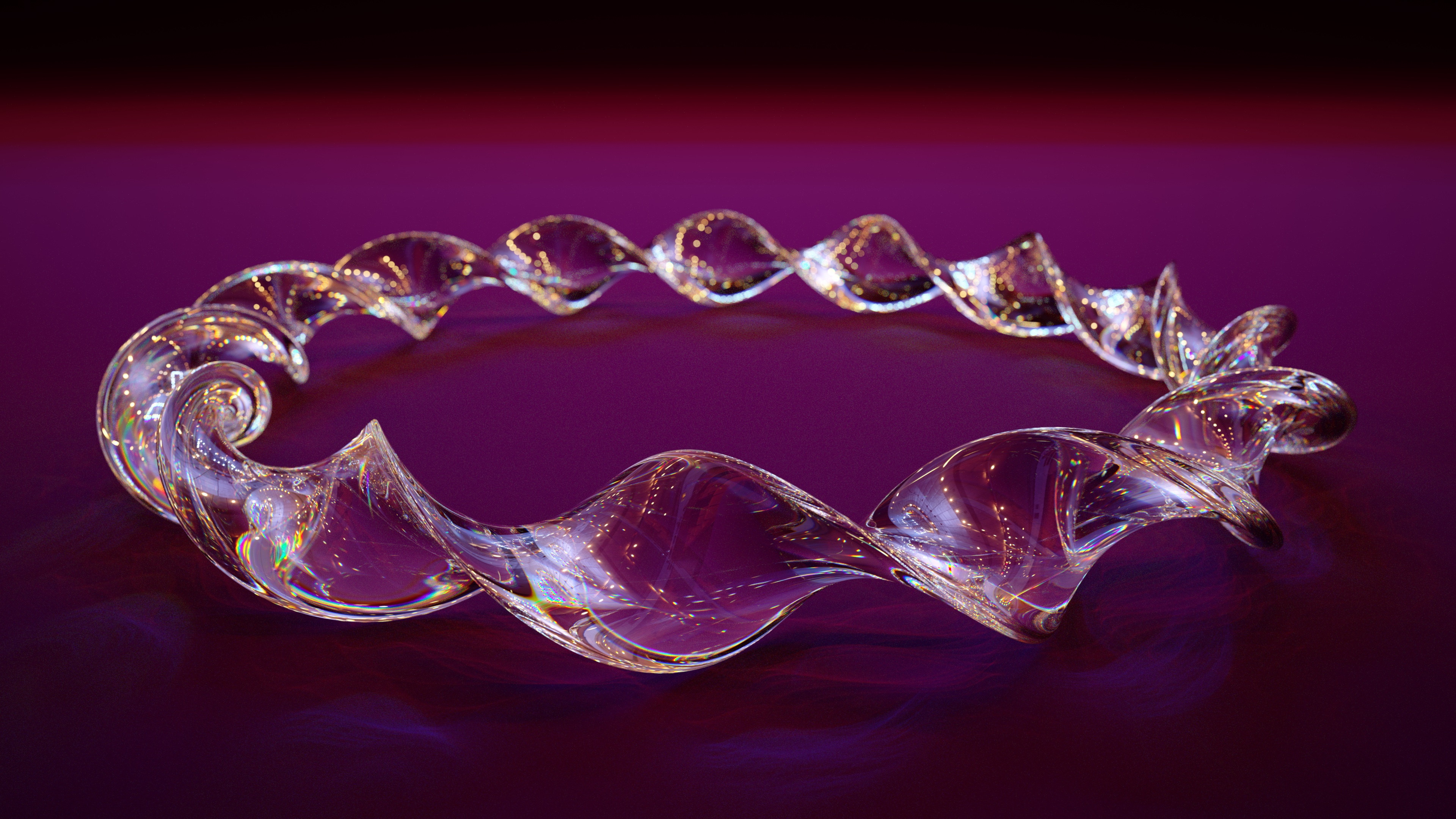 The geometry of the scene is obviously very simple, a twisted torus and a curved plane.