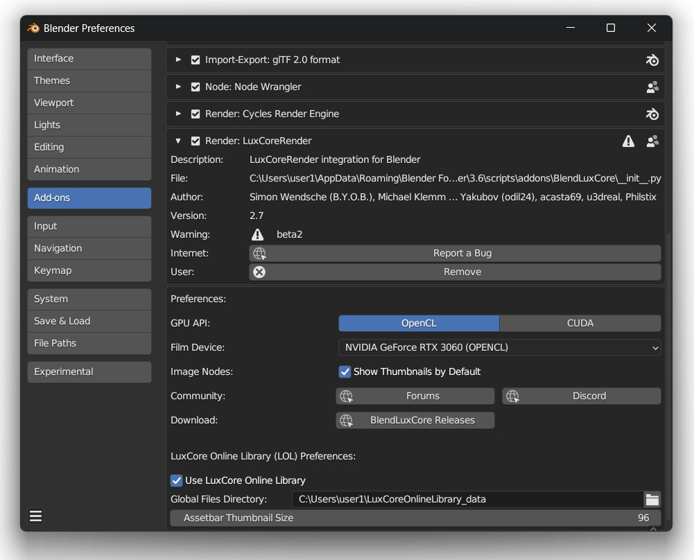 I'm using Blender 3.6.5. LTS and LuxCoreRender 2.7
